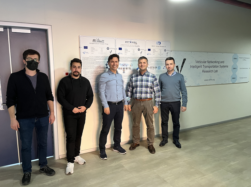 Intetra Elektronik San. ve Tic. A.Ş. CTO Recep Bahar, R&D Director Tufan Yılmaz and Onur Kocak have visited VeNIT Lab on 6 December 2021. We’ve made field demonstration of our V2X applications and C-ITS solutions in Marmara Üniversitesi Mehmet Genc Campus. We've discussed collaboration/cooperation opportunities in transportation, smart mobility, IoT and networking domains.